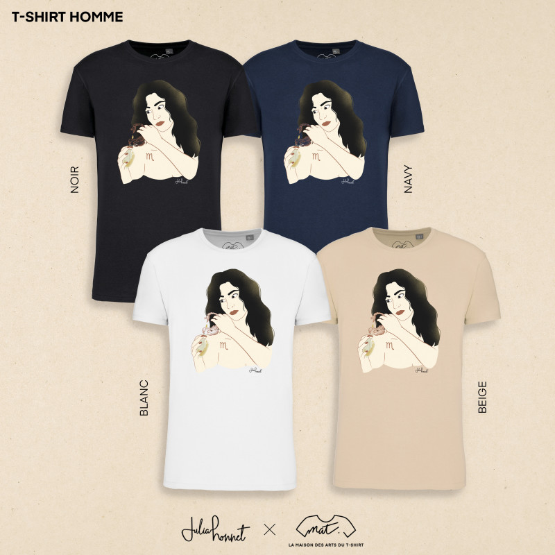 T-shirt homme, coupe droite | T-shirt femme, coupe cintrée |100% Coton Bio, imprimé en France dans nos locaux en édition limitée, livré avec un certificat d'authenticité numéroté et signé par l'artiste