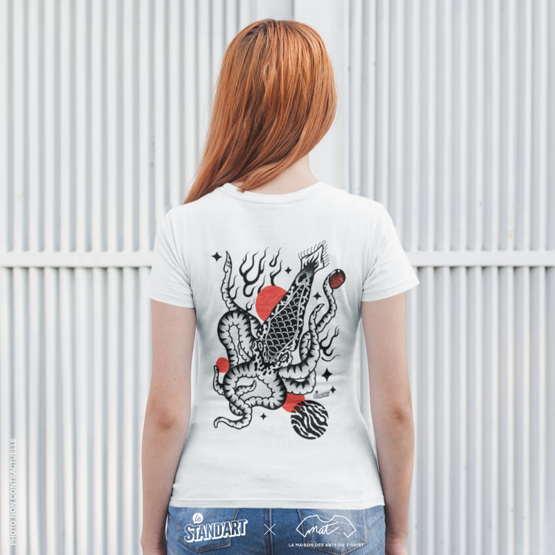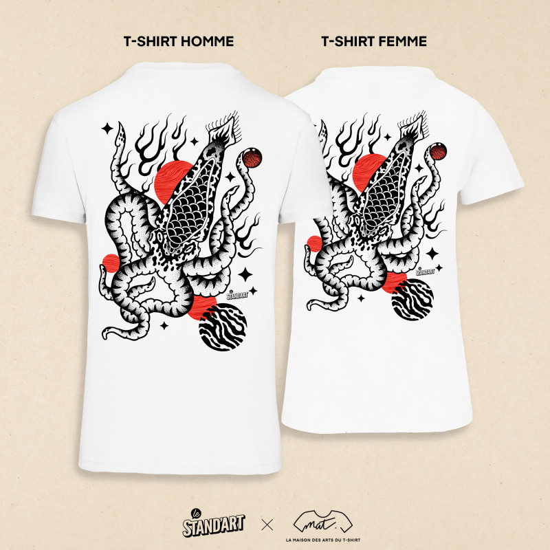 T-shirt homme, coupe droite | T-shirt femme, coupe cintrée |100% Coton Bio, imprimé en France dans nos locaux en édition limitée, livré avec un certificat d'authenticité numéroté et signé par l'artiste