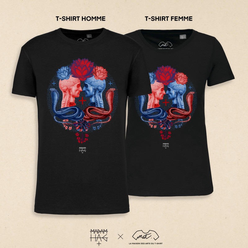 T-shirt homme, coupe droite | T-shirt femme, coupe cintrée |100% Coton Bio, imprimé en France dans nos locaux en édition limitée, livré avec un certificat d'authenticité numéroté et signé par l'artiste