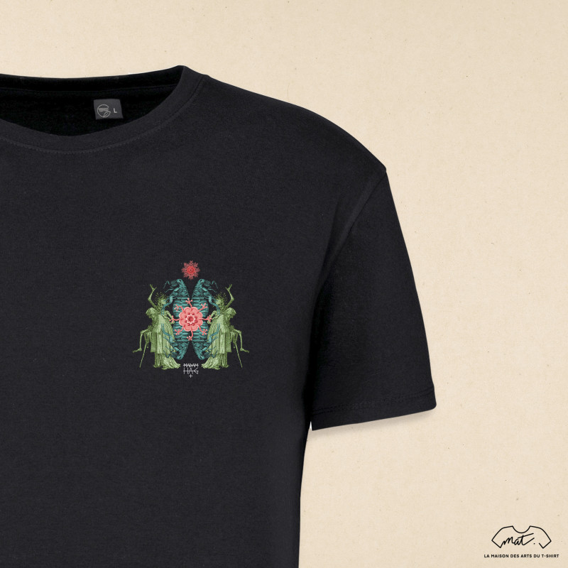 T-shirt homme, coupe droite | T-shirt femme, coupe cintrée |100% Coton Bio, imprimé en France dans nos locaux en édition limitée, livré avec un certificat d'authenticité numéroté et signé par l'artiste