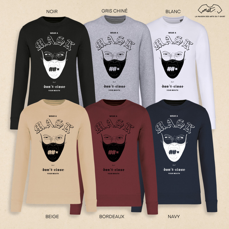 Sweat-shirt unisex BIO, col rond, imprimé en France dans nos locaux.