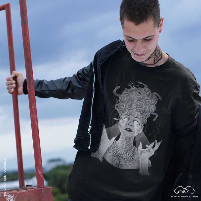 Imprimé dos et coeur avec étiquette “La Maison des Arts du T-shirt” à l’intérieur du col.